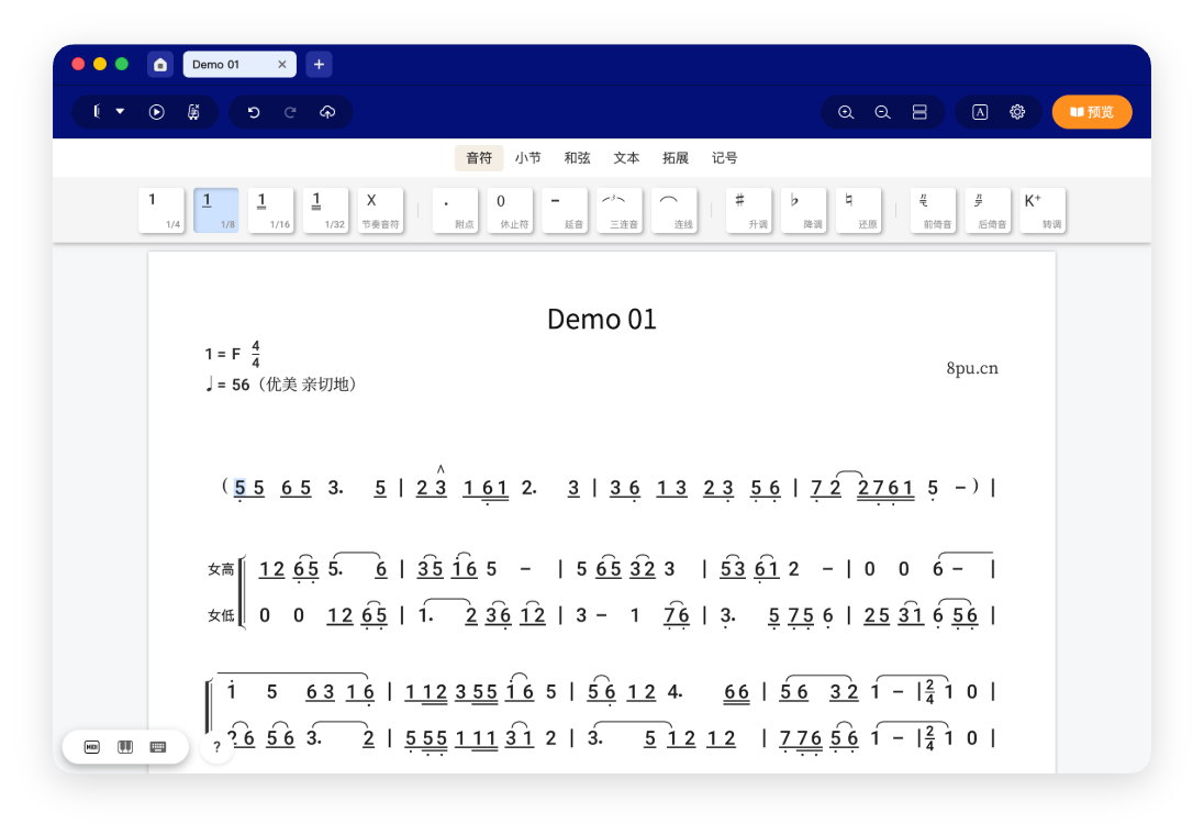 8pu 是一个在线制作简谱、功能谱的打谱应用平台。